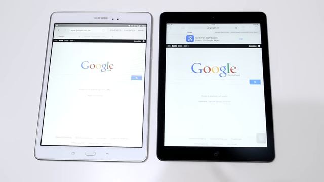 Get it on Amazon: http://amzn.to/2cQR3pw In this tablet comparison we let the new Samsung Galaxy Tab A 9.7 fight against the iPad Air from Apple. The design of both tablets is quite similar now, but on one runs Android 5.0.2 Lollipop with TouchWiz and on the other iOS 8. There are a lot of hardware differences as well.