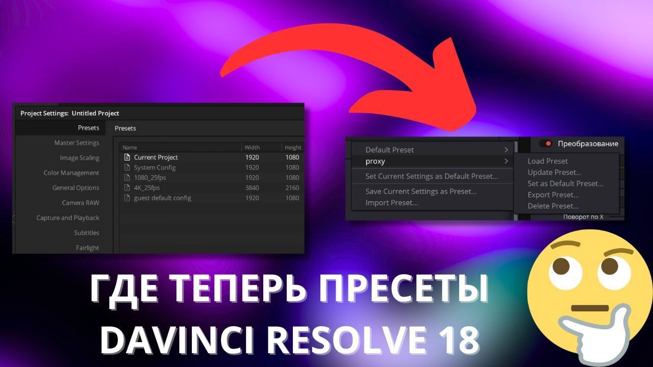 Куда перенесли пресеты настроек проекта в DaVinci Resolve 18?