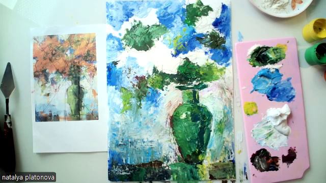 Букет цветов в зеленой вазе (мастихин)