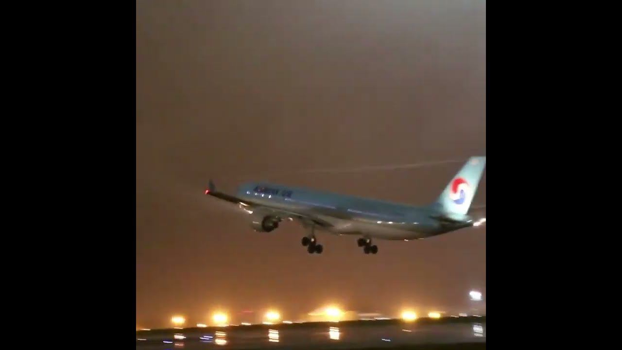 Посмотрите, как ночью эффектно взлетает Airbus A330 Korean Air