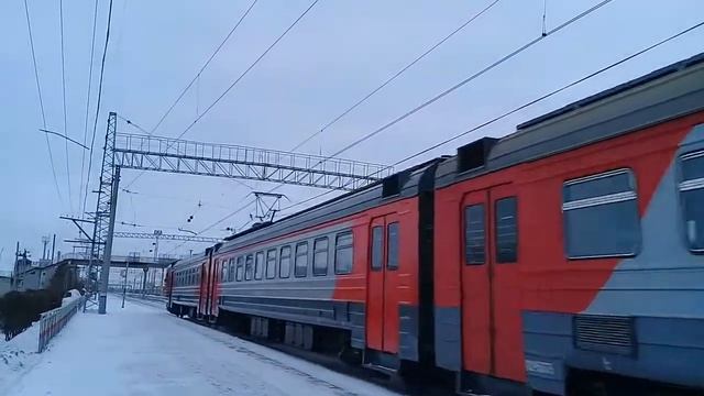 Электропоезд ЭД4М-0215 с пригородным поездом 6331/6205 Курган-Челябинск-Главный