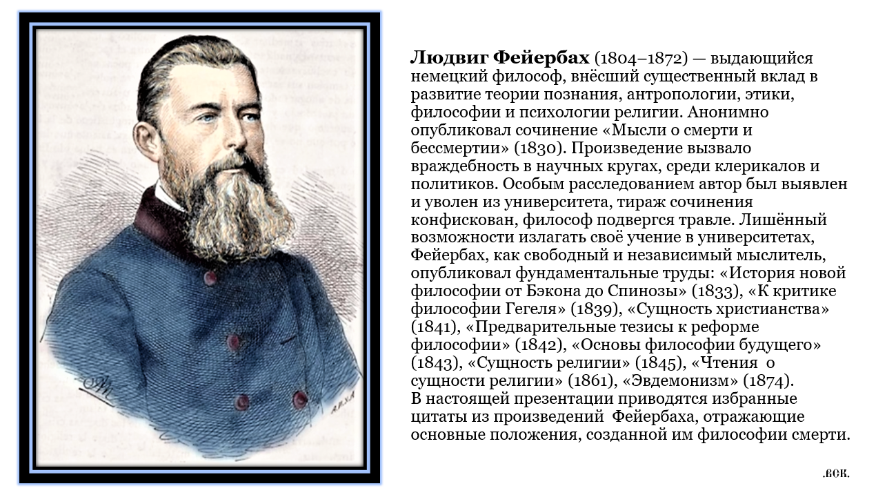 Философия смерти. Избранные мысли Людвига Фейербаха.