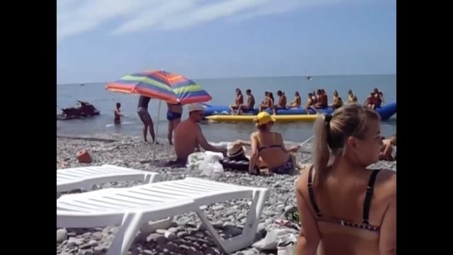 Центральный пляж в Лазаревском. Развлечения на пляже. Главный кормилец трубочками. 2021г.