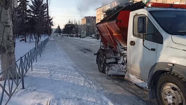 Бригада самарских рабочих выполнила расчистку и обработку дорог в Снежном