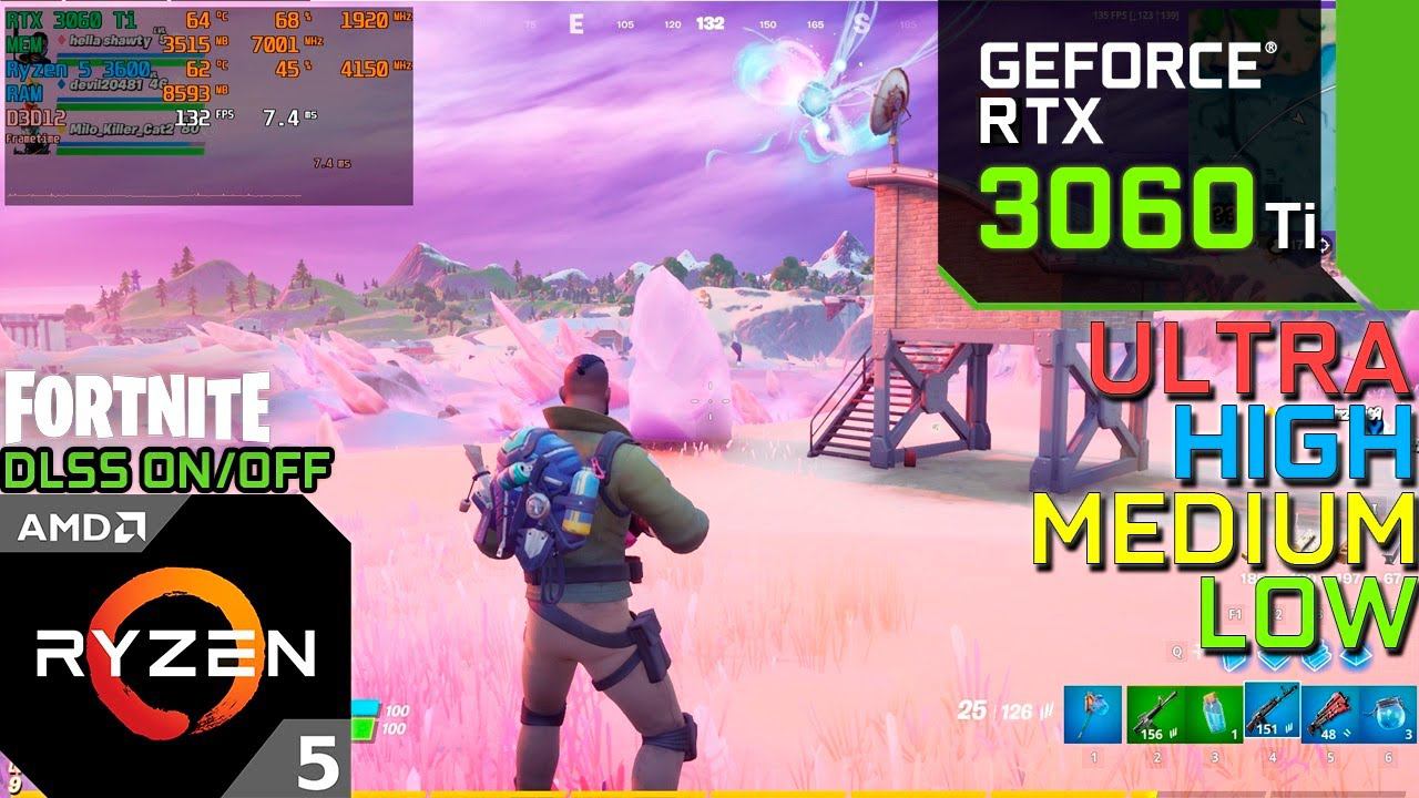 Fortnite : RTX 3060 Ti 8GB + Ryzen 5 3600 | 1080p All Settings, DLSS ON\OFF