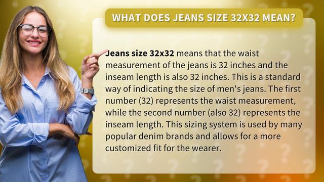 Are you tired of feeling confused about what jeans size 32x32 really means? Look no further! In this video, we break down the standard way of indicating the size of men's jeans and explain how this sizing system allows for a more customized fit. Say goodbye to ill-fitting denim and hello to your perfect pair of jeans. Watch now!