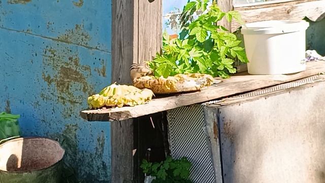 Ремонт мотокосы наконец удался, заменил сальник коленвала и мототриммер заработал, правда после опять сломался. Наглый бурундук приглашает урожай подсолнечника. Убираем огород.