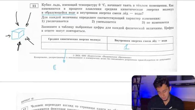 Кубик льда, имеющий температуру 0 °C, начинает таять в тёплом помещении. Как изменяются - №27967