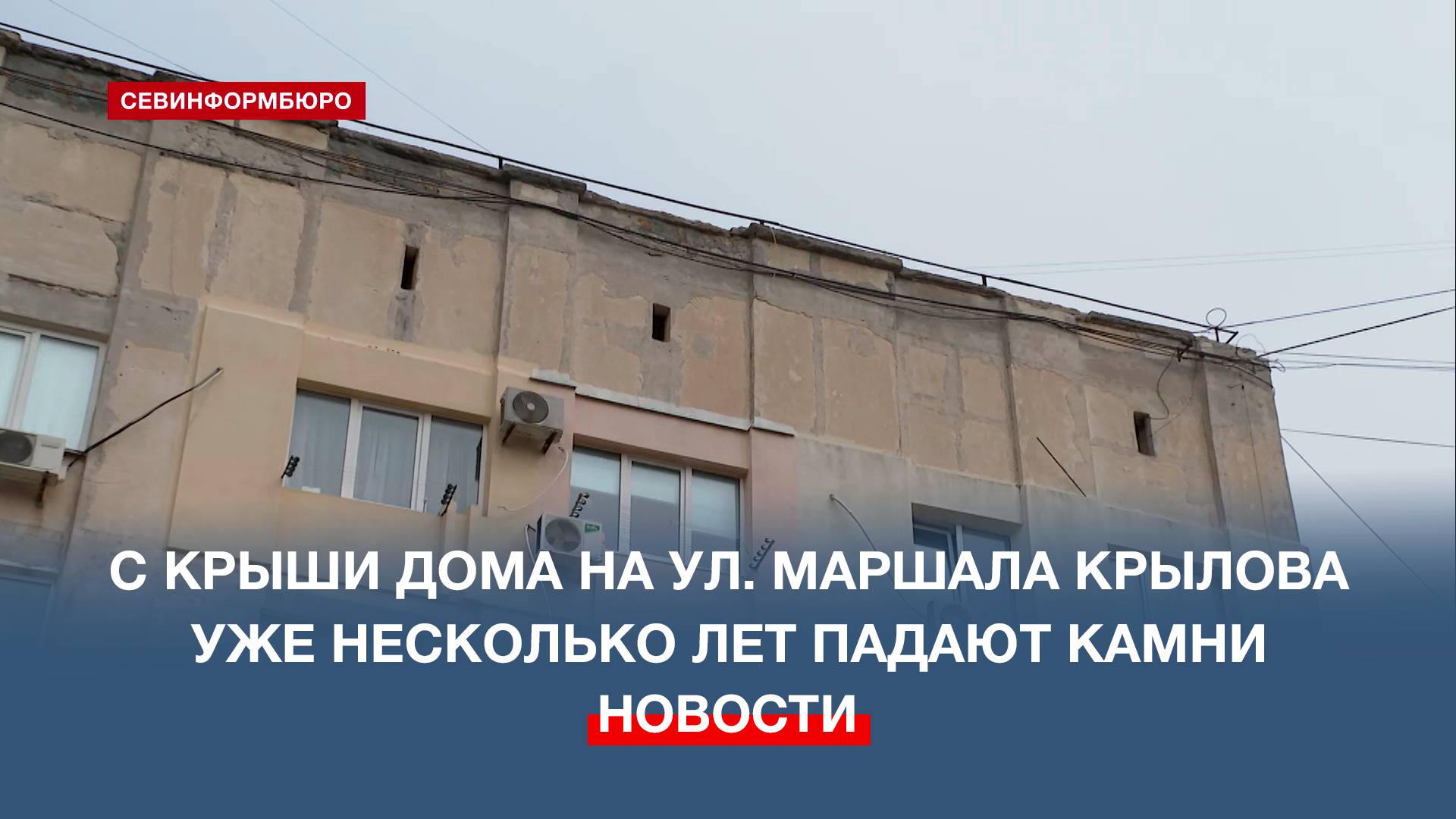 Жители севастопольской пятиэтажки рискуют получить камнем по голове из-за ветхой крыши. В редакцию нашего телеканала обратились севастопольцы, проживающие во втором корпусе дома №8-А на ул. Маршала Крылова. Люди пожаловались, что уже несколько лет с кровли их дома периодически падают куски бетона. Подписывайтесь на наш Телеграм-канал: https://t.me/nts_novosti Смотрите новости Севастополя и Крыма на сайте НТС: http://nts-tv.com В нашей группе "ВКонтакте": https://vk.com/ntssevastopol На странице в "Одноклассниках": https://ok.ru/ntssevastopol