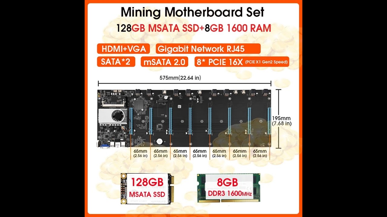 Безрайзерная материнская плата для майнинга BTC-S37 на 8 GPU и серверный блок питания на 6-pin.