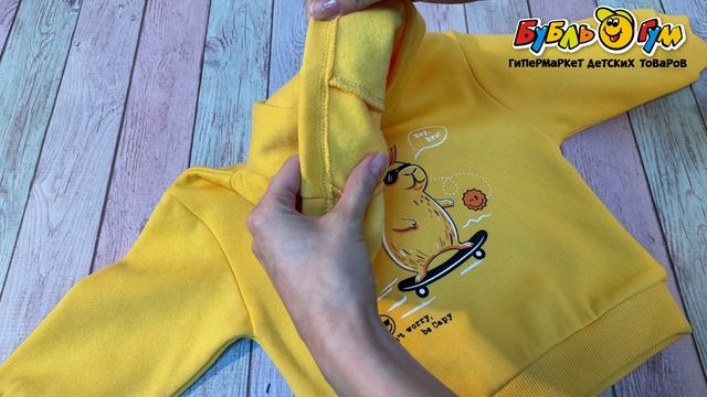 328681 Толстовка Lanson Kids утепленная с капюшоном и капибарой горчичная