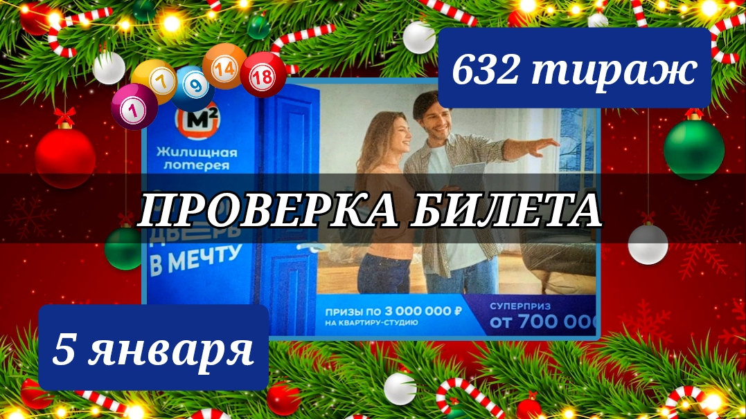 Проверка билета. ЖИЛИЩНАЯ ЛОТЕРЕЯ 632 тираж 5 января.