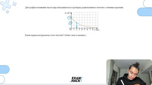 Дан график изменения числа ядер находящегося в пробирке радиоактивного изотопа с течением - №28185