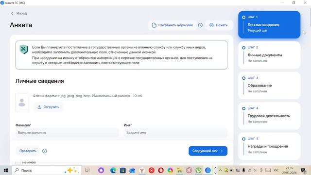 Анкета государственного муниципального служащего в электронном виде