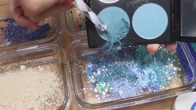СЛАЙМ «Синяя радуга» — смешиваем «синий» макияж и блёстки в слайм! Увлекательное видео со слаймом!
