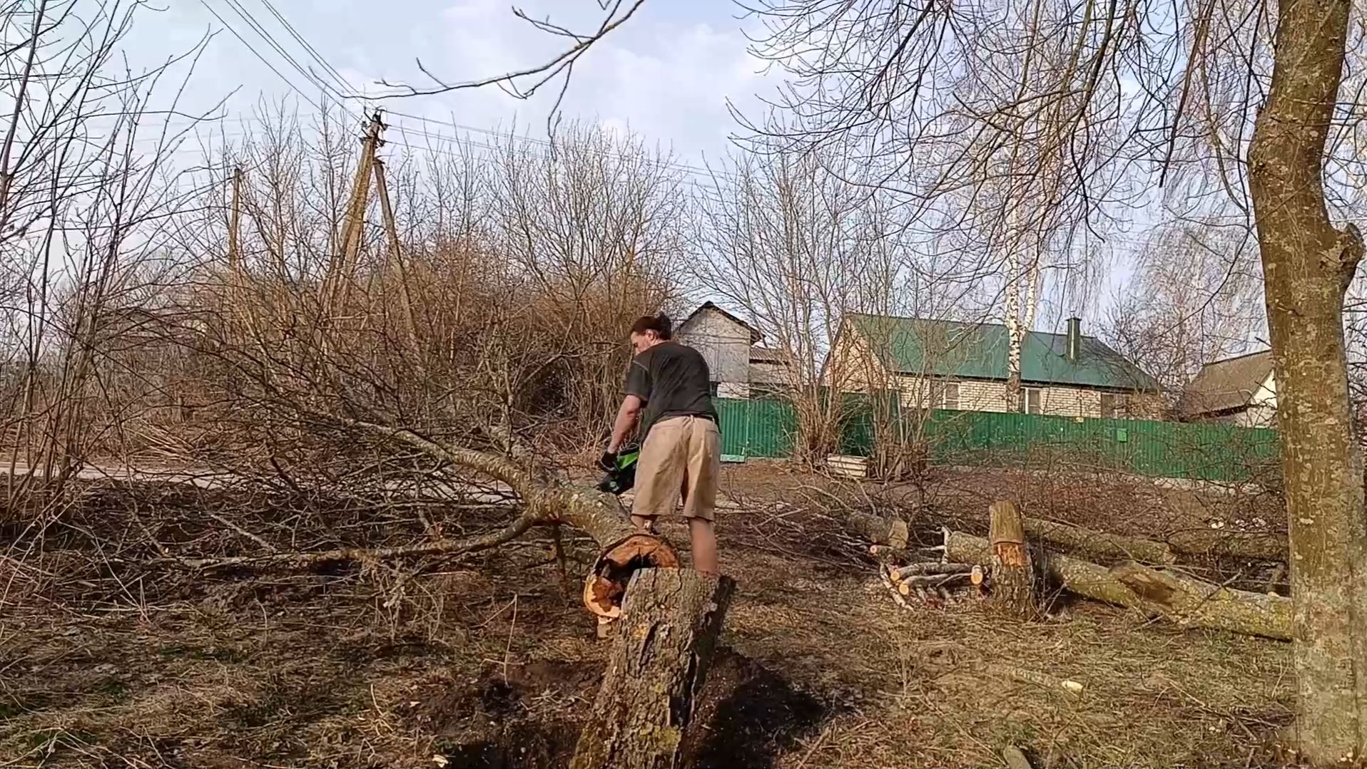 Спиливание опасных деревьев перед домом. Апрель 2024. часть 2