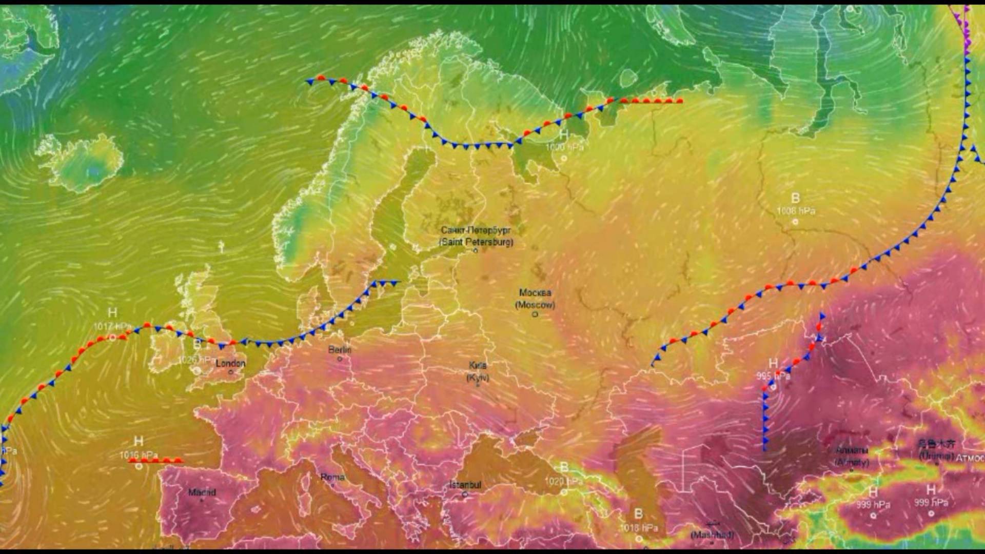 Движение воздушных масс воздуха над Европой и ЕТР за июнь 2025 года