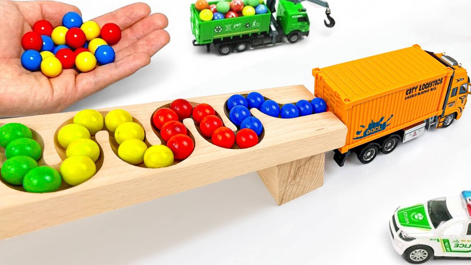 Забег мраморных шариков Склон ☆ Самосвал Экскаватор Скорая помощь Погрузчик Мусоровоз Трактор