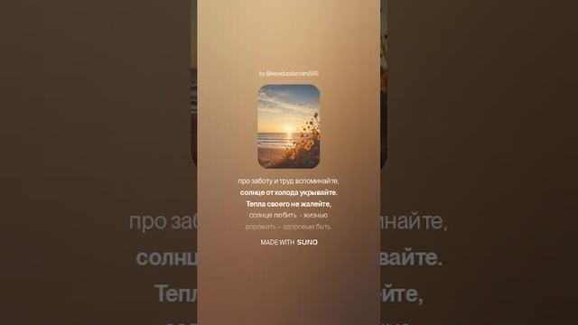 Автор слов текста песни Дюкова Татьяна. Использовать можно только с разрешения. АРАНЖИРОВКА ПЕСНИ СДЕЛАНА С ПОМОЩЬЮ НЕЙРОСЕТИ. Нейросеть делает разные аранжировки на текст песен, используя свой алгоритм и музыкальную базу данных, поэтому каждая новая версия звучит как уникальное произведение. И песни получают каждый раз новое вдохновение и выходят в совершенно новом свете. Поэтому часто выкладываю вам из десяти песен написанных на один текст – несколько - выбирайте сами, что вам по душе И СЛУШАЙТЕ