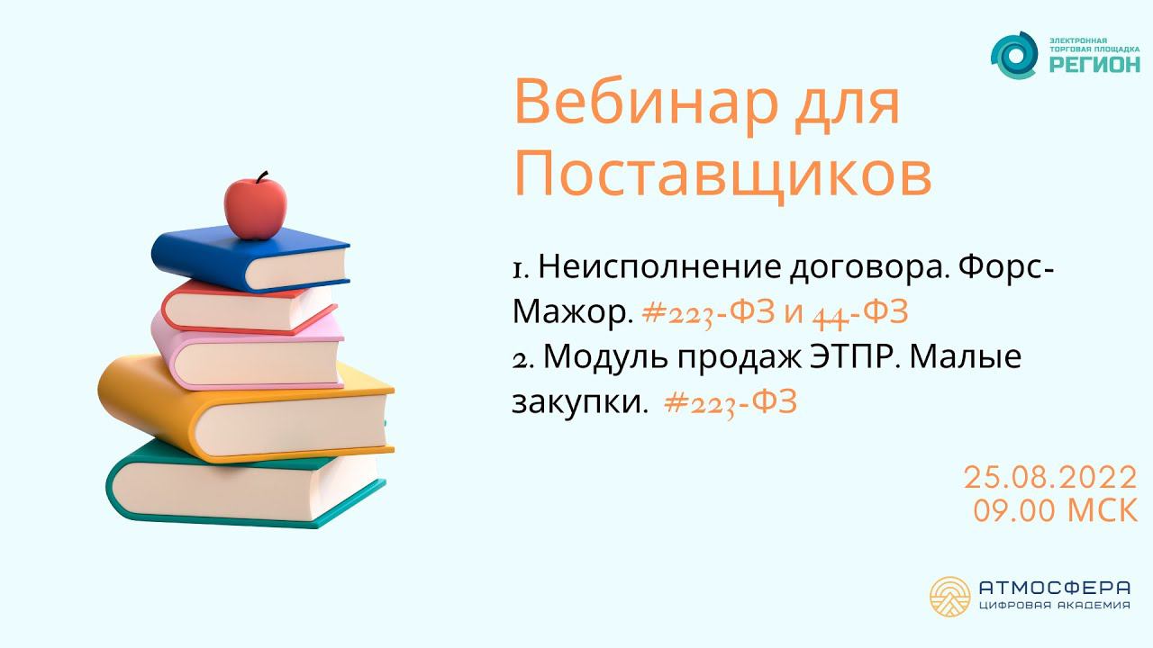 1.Неисполнение договора. Форс Мажор. 223 ФЗ и 44 ФЗ 2. Модуль продаж ЭТПР. Малые закупки
