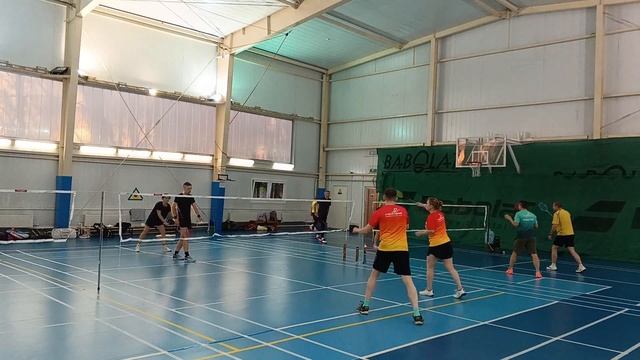 Тренировочная игра в бадминтон через сетку. Играют любители, новички и опытные бадминтонисты. Игра на сборах в доме отдыха Снегири от клуба Искра #badminton #badmintonlovers #badmintonrussia #бадминтон #искра #iskra #snegiri #снегири