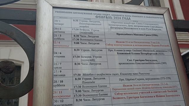 Храм во имя священномученика Климента, Папы Римского (!) Храм во имя священномученика Климента, Папы Римского — храм Московской городской епархии Русской православной церкви, расположенный в Москве на пересечении Климентовского переулка и Пятницкой улицы. Относится к Москворецкому благочинию Московской городской епархии. Крупнейший храм Замоскворечья. Храм был перестроен и освящён в 1720 году, затем в 1756—1758 годах к нему добавили трапезную и колокольню. В 1762 году прихожане получили разрешение на слом главного объёма старого храма, и к 1769 году на средства купца К. М. Матвеева был завершён пятиглавый барочный храм, дошедший до наших дней. Авторство постройки не установлено; предположительно, его выстроил Иван Яковлев по проекту Пьетро Антонио Трезини (согласно другому предположению — по проекту Алексея Евлашева). В рукописном «Сказании о церкви Климента папы Римского в Замоскворечье» (обнаружено в середине XIX века в Верхнеуральске) утверждается, что 70 тысяч рублей на строительство ассигновал генерал-фельдмаршал Алексей Бестужев, чья усадьба стояла в околотке. Церковь закрыта в 1934—1935 годах после неоднократных, всё возраставших обложений её налогами со стороны финансовых органов, что привело в конце концов к аресту священников[8]; отдана под книгохранилище обменно-резервного фонда библиотеки имени Ленина[9], в связи с этим иконостас и частично внутреннее убранство не были окончательно уничтожены. Архитектурные обмеры храма произвёл в 1932 году архитектор Семён Кулагин. В 1986—1987 годах 30 тысяч томов церковной литературы, хранившейся в церкви Климента, и в том числе из библиотеки Оптиной пустыни, были переданы Московской духовной академии. В 1988 году около 400 книг и примерно столько же брошюр возвращено в саму пустынь[10]. В 2008 году здание храма, сохранившее свой облик, а также в некоторой степени интерьер, было передано православной общине, а книги вывезены. В течение нескольких лет богослужения совершались только в северном приделе. В настоящее время храм отреставрирован. В нём регулярно проводятся богослужения.