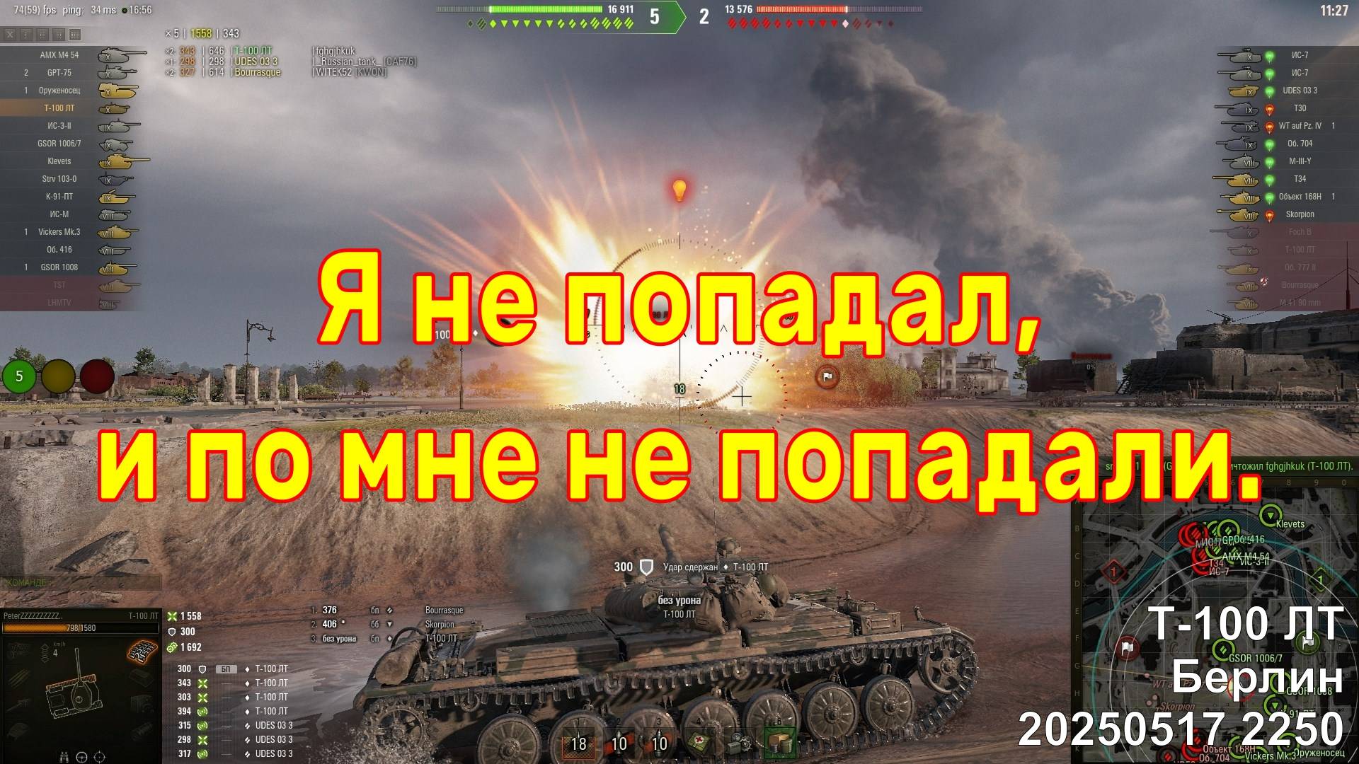 Я не попадал, и по мне не попадали. Т-100 ЛТ. Берлин. 20250517 2250.