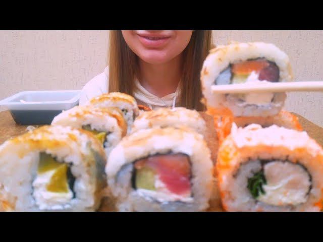 MUKBANG СУШИ И РОЛЛЫ ПРИЕМ НА РАБОТУ