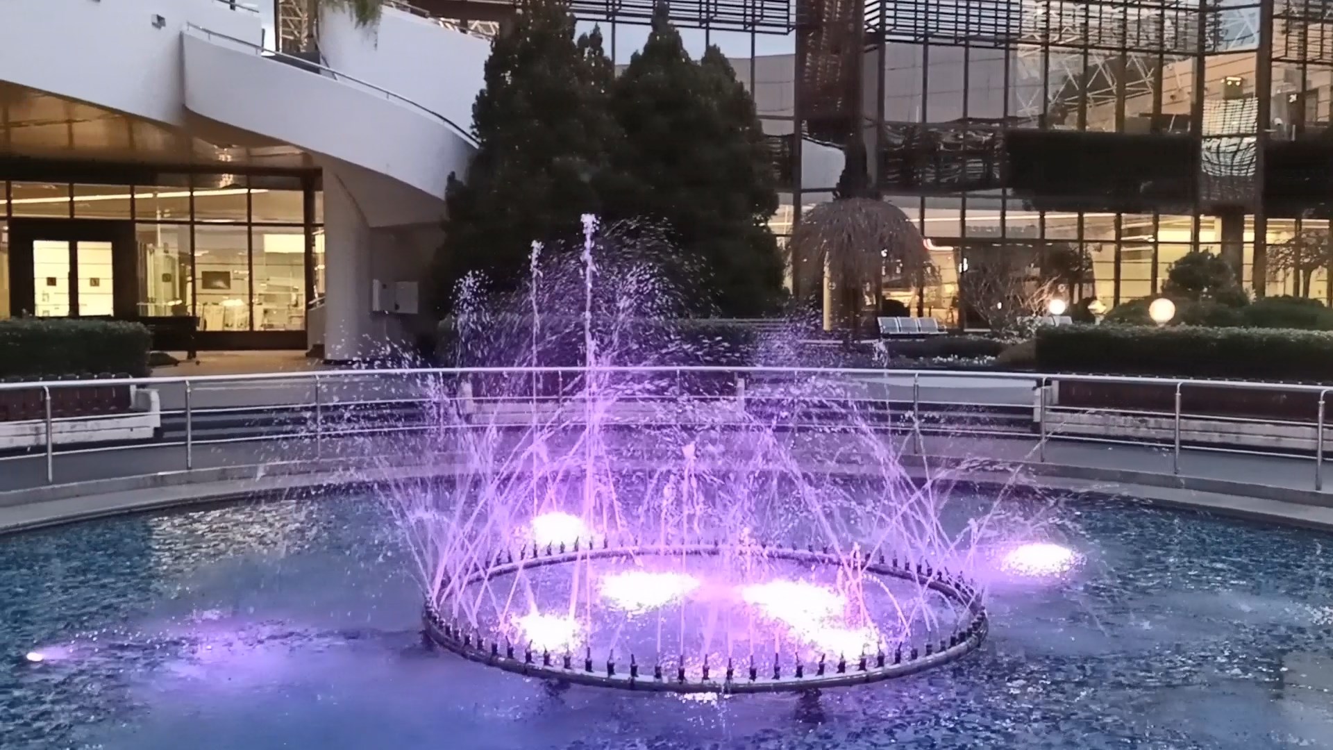 Фонтан с подсветкой во внутреннем дворике аэропорта Сочи, очень раннее утро 1 февраля.