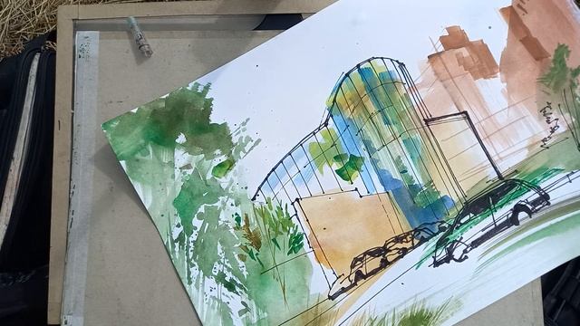 Городская зарисовка Акварель Перо 27.07.2023/1 1 часть: Пленэр. Первую половину рисую молча, после 17:22 рассказываю.