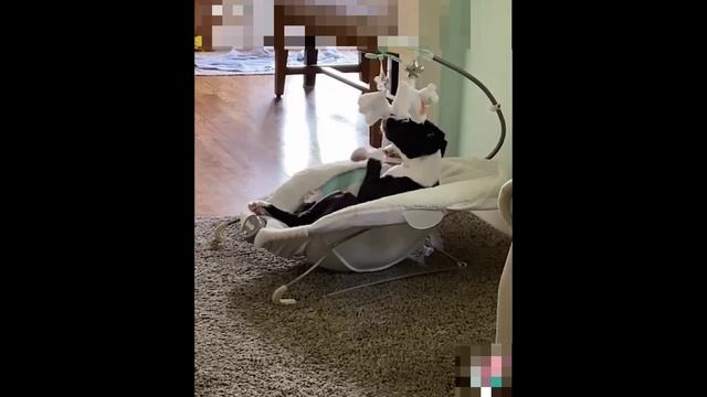 Cобачка по имени Канзас, развлекается, когда хозяева заняты. Она ложиться в детскую колыбельку и на