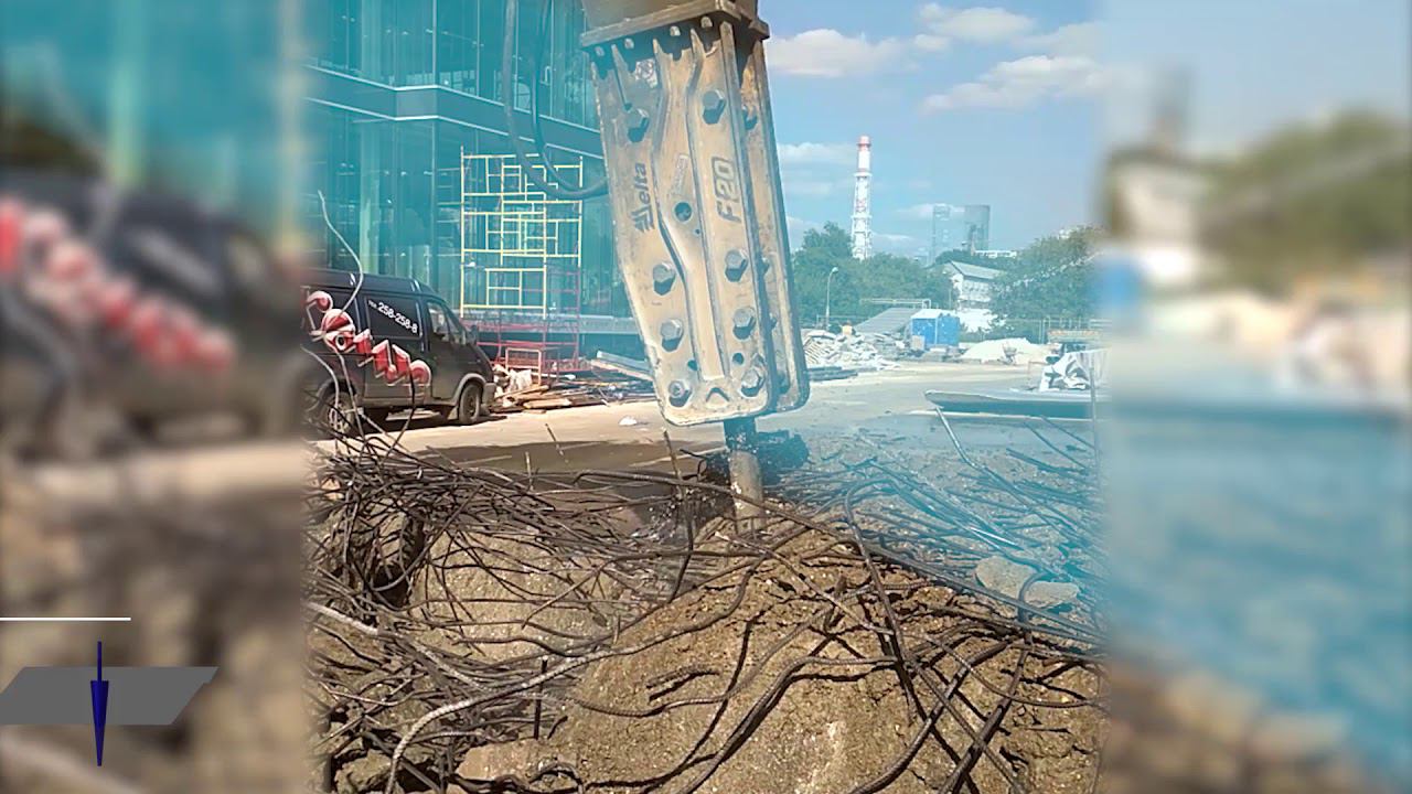 Гидромолот Delta F-20, установленный на экскаваторе Hyundai Robex 200W-7, выполняет работы на территории бизнес-центра «Времена года» в Москве. http://gidromolot.tradicia-k.ru/product/gidromolot-delta-f-20/