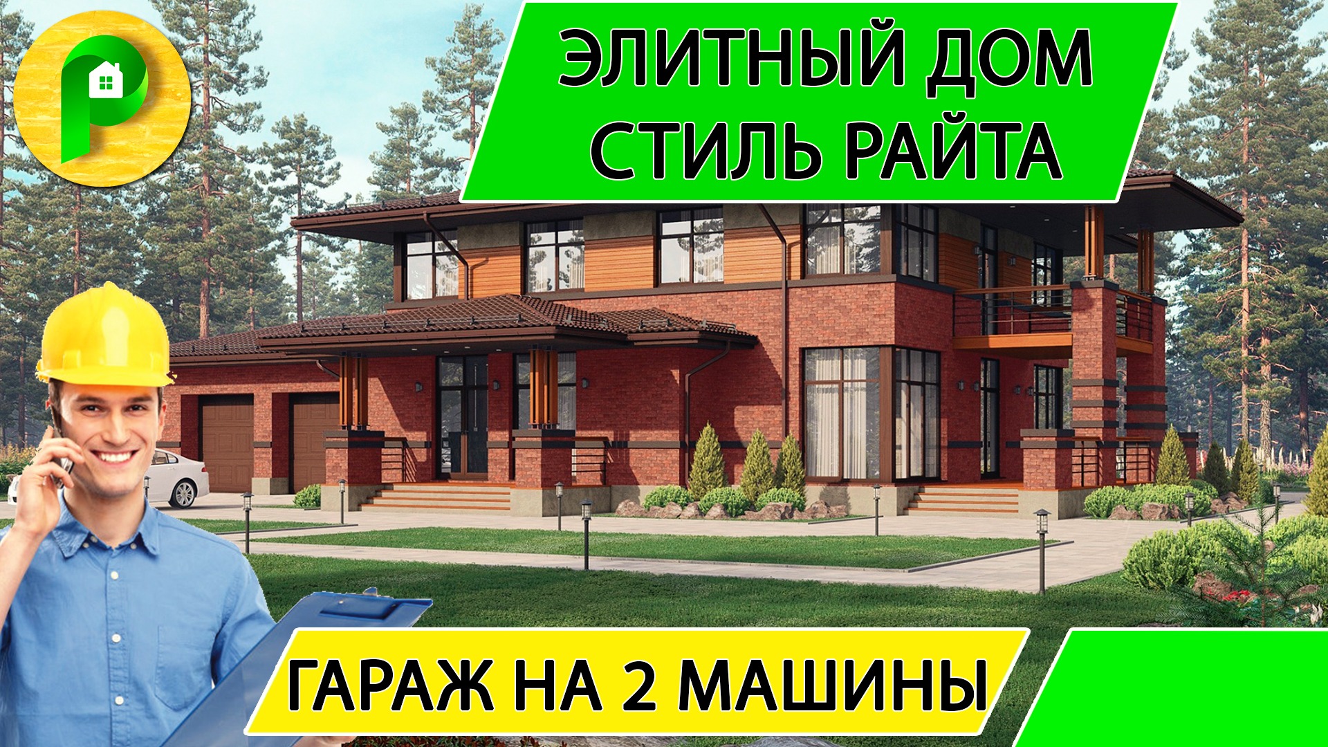 Проект дома в стиле райта из кирпича с гаражом и сауной, 340 кв.м. 23 на 26Ремстройсервис М 367