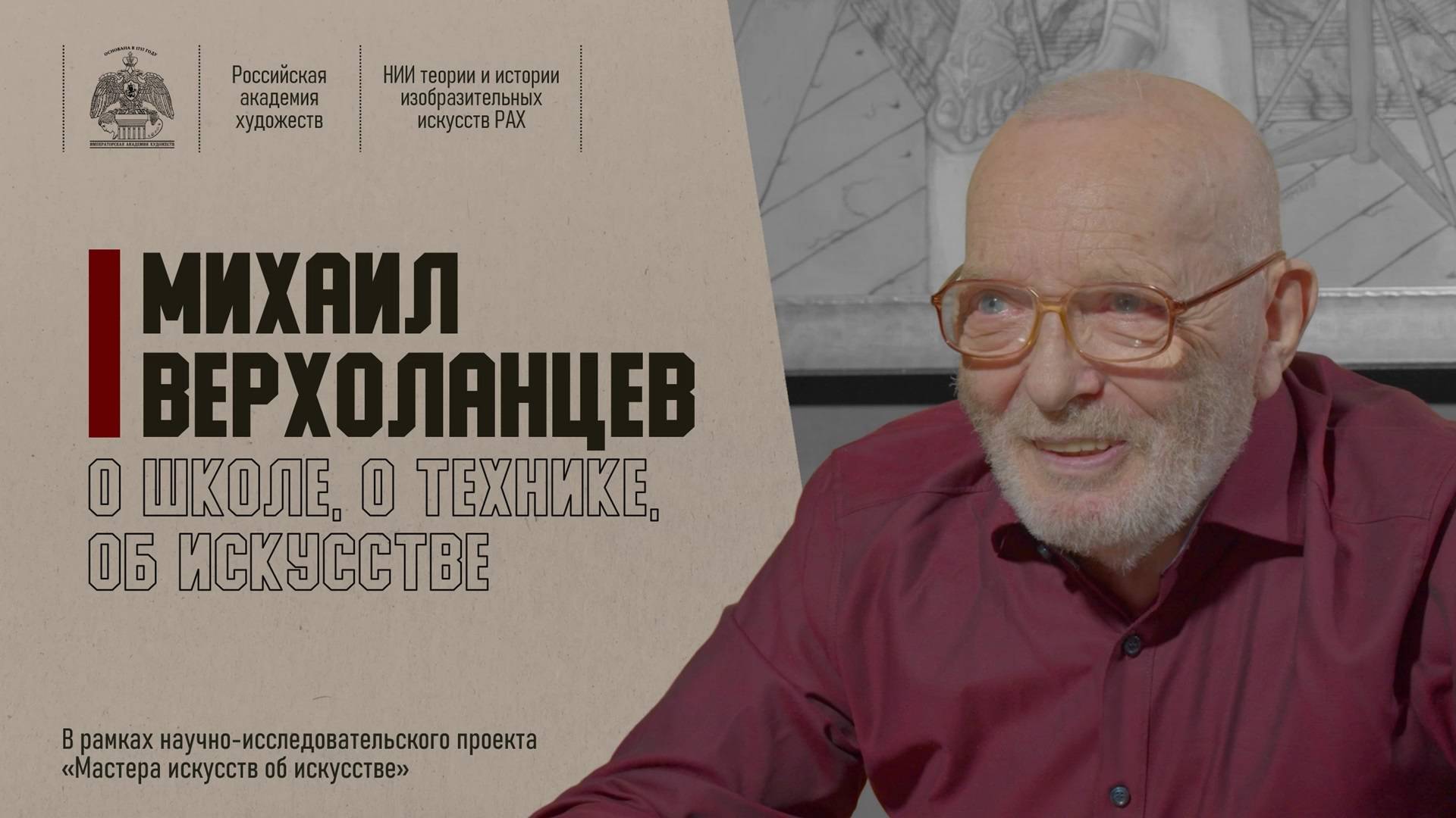 Академик Российской академии художеств Михаил Михайлович Верхоланцев - крупнейший мастер современной ксилографии, работающий в уникальном творческом стиле. Гравёр, живописец, дизайнер, эссеист и учёный, певец и музыкант - он, исповедующий эстетику позднего Возрождения и маньеризма, сам кажется пришельцем из Ренессанса, но не эпохи спокойной и тихой гармонии Рафаэля и Леонардо, а периода именно позднего творчества страстных и мощных Микеланджело и Тициана. Его работы отличают высокое мастерство, необыкновенная образность, сочетающая старинную технику с новым экспрессивным, изысканным и утонченным рисунком. Художник обладает глубокими научными знаниями в области изобразительного искусства, особенно теории и технических методов в гравюре и графики. Российская академия художеств и Научно-исследовательский институт теории и истории изобразительных искусств РАХ подготовили интервью с известными мастерами изобразительного искусства - членами РАХ в рамках проекта «Мастера искусств об искусстве». Проект был реализован в рамках академических выставок 2022 года: https://rah.ru/exhibitions/detail.php?ID=58220