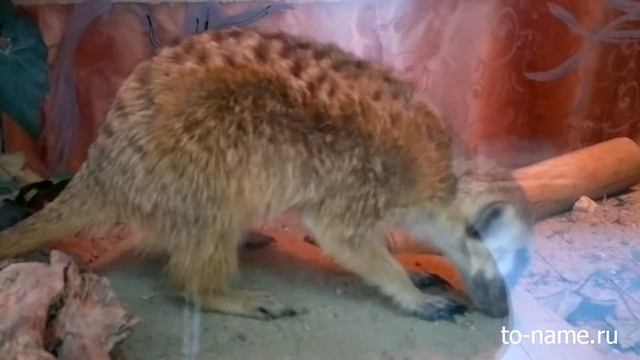 http://to-name.ru/astrolog/animals-horoscope/index.htm - звериные гороскопы. Живой симпатичный Сурикат. Сурикат, или суриката (латинское Suricata suricatta) — вид млекопитающих из семейства мангустовых (Herpestidae). Распространён в Южной Африке, в основном, в районе пустыни Калахари: на территориях юго-западной Анголы, Намибии, Ботсваны и ЮАР, раньше их замечали и на Мадагаскаре. Хищное млекопитающее семейства виверровых. Длина тела до 35 см, слабо опушенного хвоста — до 25 см. Шерсть редкая, мохнатая, на спине и боках ряды пятен или неясные беловатые и бурые поперечные полосы. Обитает в пустынных районах Южной Африки. Активен днём; селится колониями в вырытых им норах, нередко среди колоний земляных белок. По манере стоять «столбиком» и издавать свистящие звуки при виде опасности напоминает сусликов. Питается насекомыми и мелкими позвоночными. Один раз в году приносит 2 — 4 детёнышей. ----------------- http://to-name.ru/astrolog/animals-horoscope/index.htm - Animal horoscopes. Cute meerkats live. Meerkat, meerkats or (Latin Suricata suricatta) - species of mammals in the family Mongoose (Herpestidae). Distributed in South Africa, mainly in the area of the Kalahari Desert: in the south-western Angola, Namibia, Botswana and South Africa, before they noticed and Madagascar. Carnivores civet family. Body length up to 35 cm, slightly pubescent tail - up to 25 cm Wool rare hairy on the back and sides of rows of spots or indistinct whitish and brown transverse stripes. Lives in the desert regions of South Africa. Active in the afternoon, settling colonies in burrows dug by them, often among the colonies ground squirrels. The manner of standing "columns" and publish whistling sounds when they see danger like gophers. It feeds on insects and small vertebrates. Once a year, bring 2 - 4 cubs.