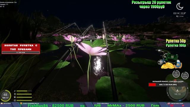 Поддержка донатом https://new.donatepay.ru/@1032463 Альтернативный донат https://www.donationalerts.com/r/kalyamba11 5536913964533059 карта Тинькоф Если стрим лагает,смотри стрим на трово https://trovo.live/s/Kalyamba_na_Ribalke Мой ВК - https://vk.com/kalyantv НИК в игре kalyan11 НАШ ДИСКОРД СЕРВЕР https://discord.gg/3ZeEDGs5h6 Заказ водоема на 1 час - 500р ( весь стрим 2500р ) Модерка на канале 1300р ( каждая следующая на 100р больше) ✅Призы в рулетке "ЗОЛОТАЯ" 500р ✔ ЗОЛОТО ✔ ПРЕМ ✔ КАТУШКИ РАПТОР 40, ВЕНГИ, ТАЙГА, СИЛЬВЕР 80, И другие ✔ ПАЛКИ ПИЛКЕРНАЯ, ДОНКА МОРСКИЕ, ✔ РОД ПОД, СТУЛЬЯ ✅Призы в рулетке СТАНДАРТ : 100р ✔ катушкИ РАПТОР 40, ВЕНГИ, ТАЙГА, СИЛЬВЕР 80, И другие ✔ катушки 60 для медного ( ЭВИИ, НАТОРЫ, ГОЛДА, и тд) ✔ ПИЛКЕРНОЕ УДИЛИЩЕ КОРОЛЕВА ОКЕАНА ✔ Морское Донное удилище ✔ прем ( 3, 7, 30 дней) ✔ золото ( 1, 3, 5, 10, 20 ,50) ✔ билет на море ( 1, 3, 5 дней) ✔ голд наживка и др. ✅Призы в рулетке "СТАРТОВАЯ" 50р ✔ катушка Венга ✔ катушка "silver80" ✔ катушка "БЕЛЫЙ КАЛИБР" ✔ катушка "Черный калибр" ✔ катушка "Протон" ✔ катушка "Нарга 6000" ✔ Набор Фидерист и спинингист ✔ Карповик Фортуна ✔ фидерные удилища ✔ прем, золото, алкашка, наживки и тд P.s Рулетка это не казино, а награда за поддержку стримера. Вечный ТОП ПОДДЕРЖКИ (10.06.2025) 1. Леха сварной 214 572 2. Dimon_pokemonchik 127 034 3. Skreb79 103 061 4. Interceptor 96 230 5. FishRus86 82 500
