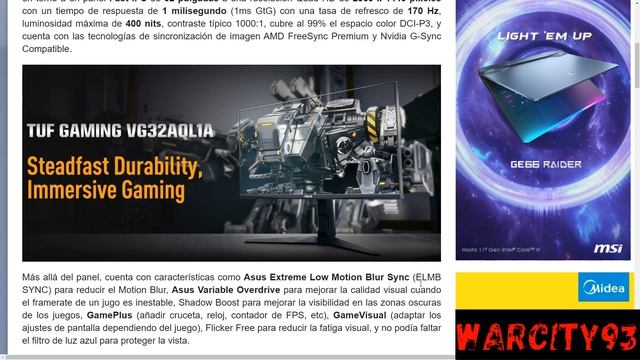 This is the amazing QHD Fast IPS 32 monitor by asus. The Asus TUF Gaming VG32AQL1A 170 Hz Monitor - Review. Asus TUF Gaming VG32AQL1A built around a 32-inch "Fast IPS" panel at a Quad HD resolution of 2560 x 1440 pixels and with a refresh rate of 170 Hz. Asus TUF Gaming VG32AQL1A offers "Fast IPS" panel is because the panel offers a long time response time of 1 millisecond (1 ms GtG), in addition to complying with the DisplayHDR 400 and HDR10 certificate to guarantee a brightness of at least 400 nits, and thanks to IPS technology it is capable of covering the DCI-P3 color space by 99%, and the contrast is 1000: 1. It is completed with the incorporation of two stereo speakers of 2W of power each, three video inputs in the form of 1x DIsplayPort 1.2 + 2x HDMI 2.0, 2x USB 3.0 ports, headphone jack, can be adjusted in height, tilt and turn. It also has the following technologies, it has features such as Asus Extreme Low Motion Blur Sync (ELMB SYNC) to reduce Motion Blur, Asus Variable Overdrive to improve visual quality when the framerate of a juice is unstable, Shadow Boost to improve visibility in dark areas of games, GamePlus (add crosshairs, clock, FPS counter, etc.), GameVisual (adapt screen settings depending on the game), Flicker Free to reduce eyestrain.
