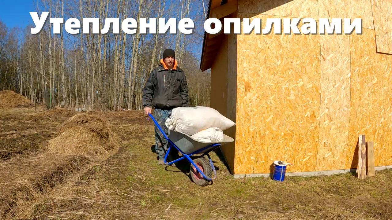 Утепление опилками каркасного сарая и деревенские будни!