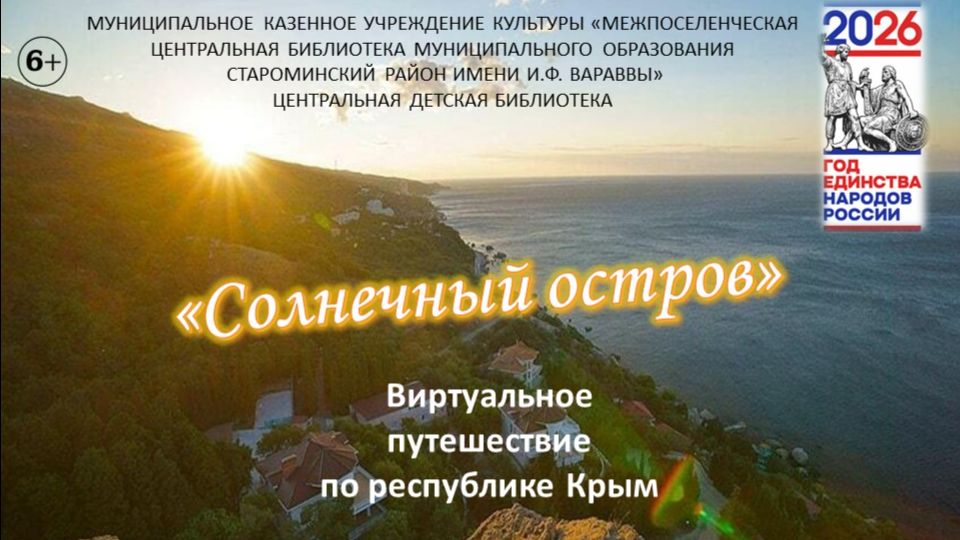Ко дню воссоединения Крыма с Россией Центральная детская библиотека подготовила увлекательное виртуальное путешествие по полуострову, называемому многими жемчужиной нашей страны.