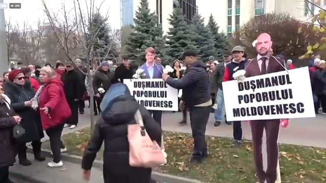 Люди требуют досрочных выборов и отставки руководства страны. В ходе акции протестующие отхлестали цветами премьер-министра Андрея Спыну.