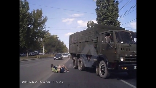 Грузовик сбил мужчину, переходившего дорогу с малышом.