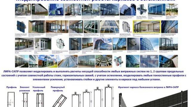 ЛИРА-САПР. Сортамент тонкостенных профилей витражных систем. Совместная работа каркаса с остеклением