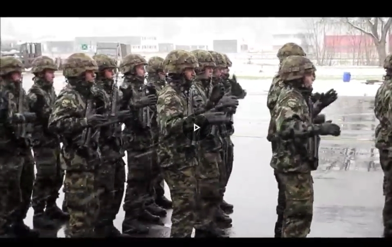 Швейцарские солдаты исполняют маршируя песню Queen ,We will rock you ...