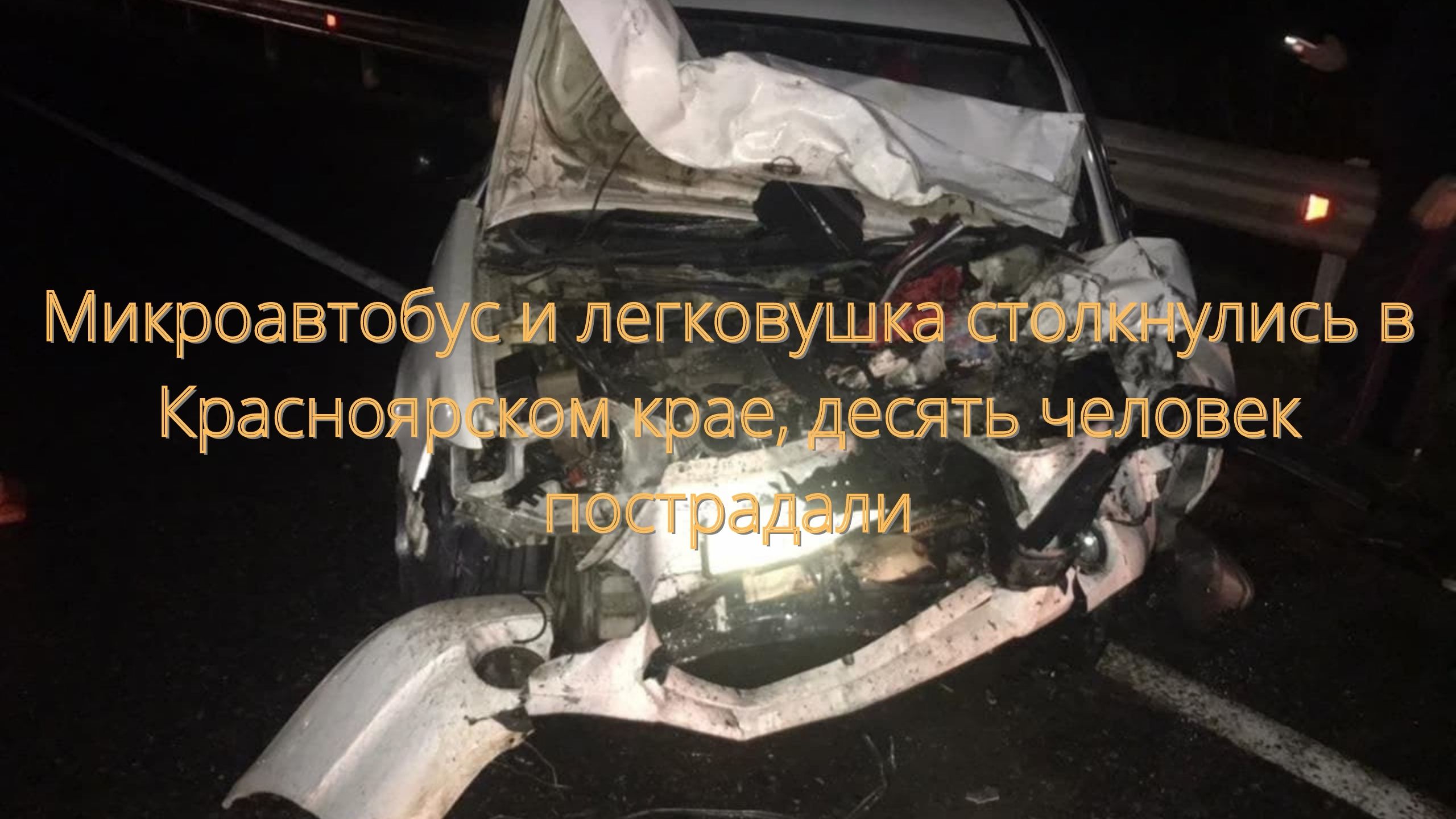 Микроавтобус и легковушка столкнулись в Красноярском крае, десять человек пострадали///