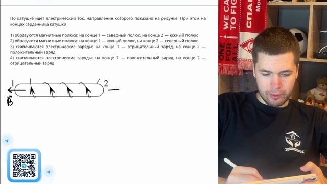 По катушке идет электрический ток, направление которого показано рисунке. При этом - №