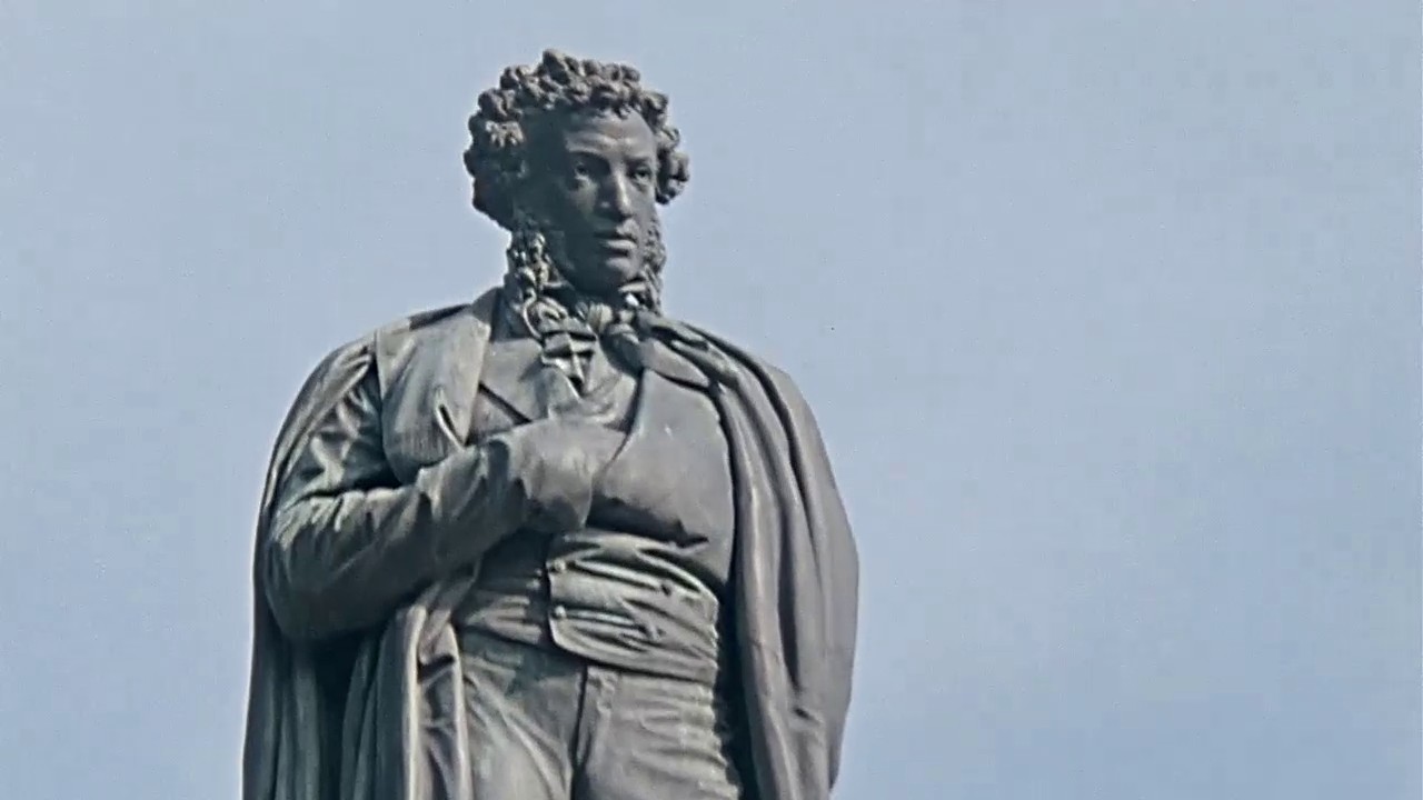 ПРИЕЗЖАЯ СЕМЬЯ ФОТОГРАФИРУЕТСЯ У ПАМЯТНИКА ПУШКИНУ