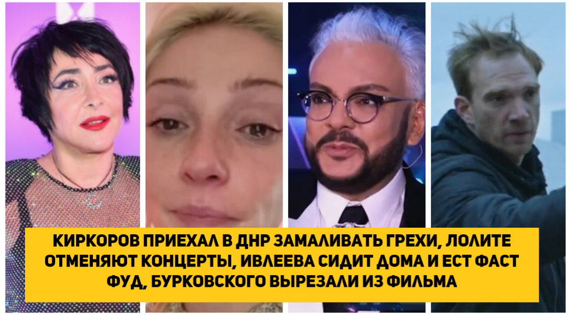 Киркоров приехал в ДНР замаливать грехи, Лолите отменяют концерты, Ивлеева сидит дома и ест фаст фуд, Бурковского вырезают из фильма Летучий корабль ФИЛИПП КИРКОРОВ ПРИЕХАЛ В ДНР, ЛОЛИТЕ ОТМЕНИЛИ КОНЦЕРТ В ПЕРМИ, Елена Малышева призвала не бояться питаться шаурмой, Бурковского вырежут из фильма Летучий корабль из-за плохо отношения к России, Ветлицкая (мираж) готова выступить перед Россиянами Ивлеева сидит дома и ест фаст фуд,