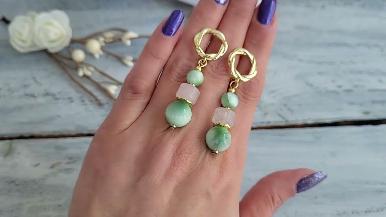 Серьги из ларимара, розового кварца