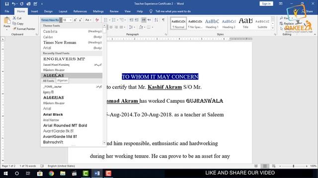 09. MS Word - Class 09 . Font Style and Size in (microsoft word 2019 tutorial) Urdu - Hindi