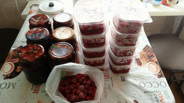 Собрала 11 литров малины,сварила варенье и заморозила малину в контейнерах на зиму.
